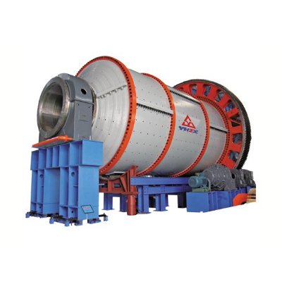 球磨机的主体是一个水平安装在两个大型轴承上的低速回转的筒体。球磨机由电动机通过减速机及周边大齿轮减速传动、或由低转速同步电机直接通过周边大齿轮减速传动,驱动回转部回转,筒体内部装有适量的磨矿介质钢球。磨矿介质在离心力和摩擦力的作用下,被提升到一定的高度,呈抛物或泄落状态落下。